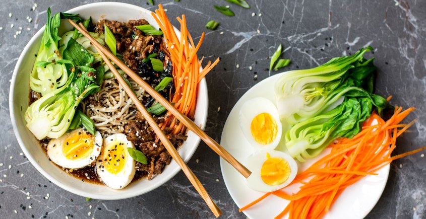 Cette recette de ramen facile à préparer propose un repas délicieux qui vous gardera au chaud lorsqu’il fait froid! Diminuez la quantité de sodium consommée en utilisant un bouillon et une sauce soya à faible teneur en sodium.